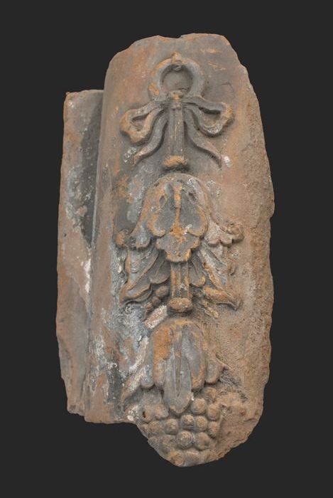 Terracotta poortje met Romaanse boog, korenaren, med...