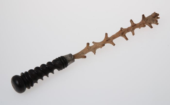 Houten ronde schaaf met initialen "IS" of "SI"