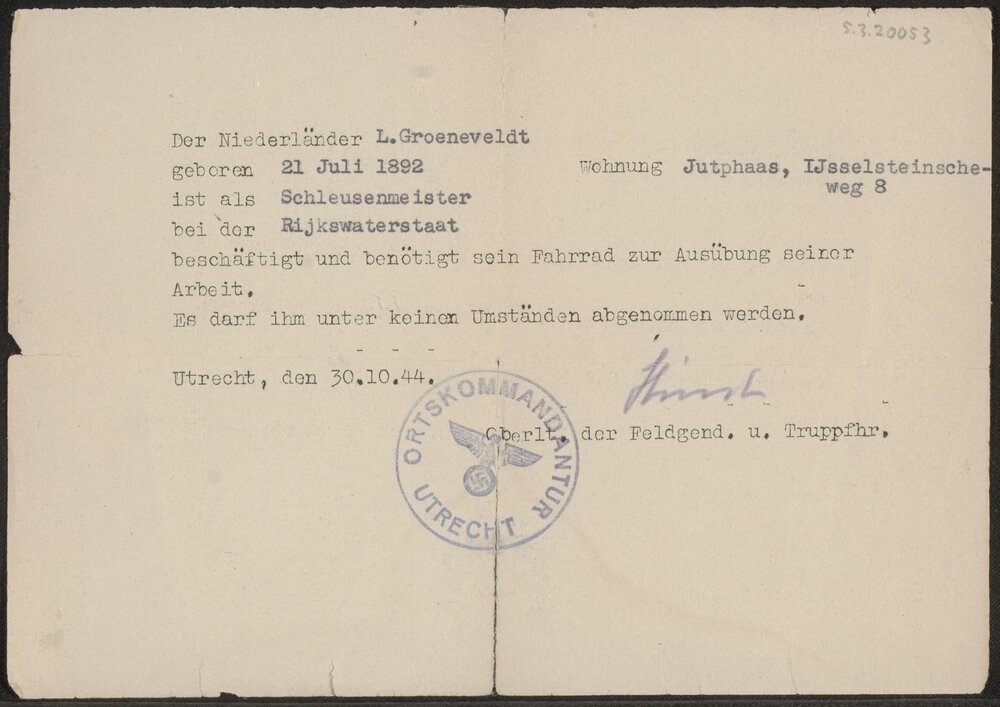 Verklaring dat de fiets van Leonardus Groeneveldt he...