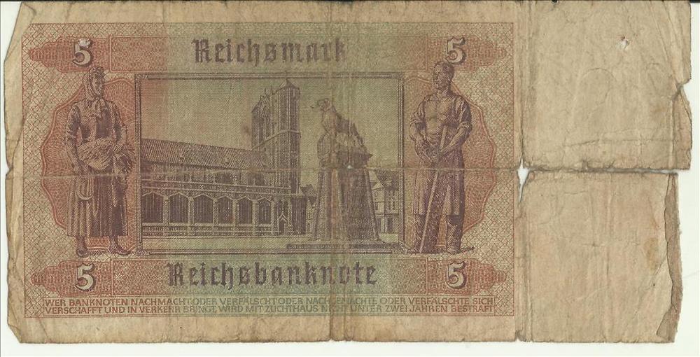 Bankbiljet Duitsland, Reichsbanknote fünf Mark ( 5 )...