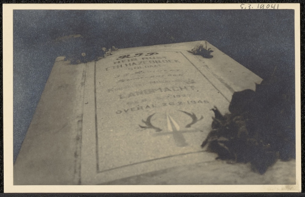 Briefkaart met foto van graf van C. Th Hazebroek, so...