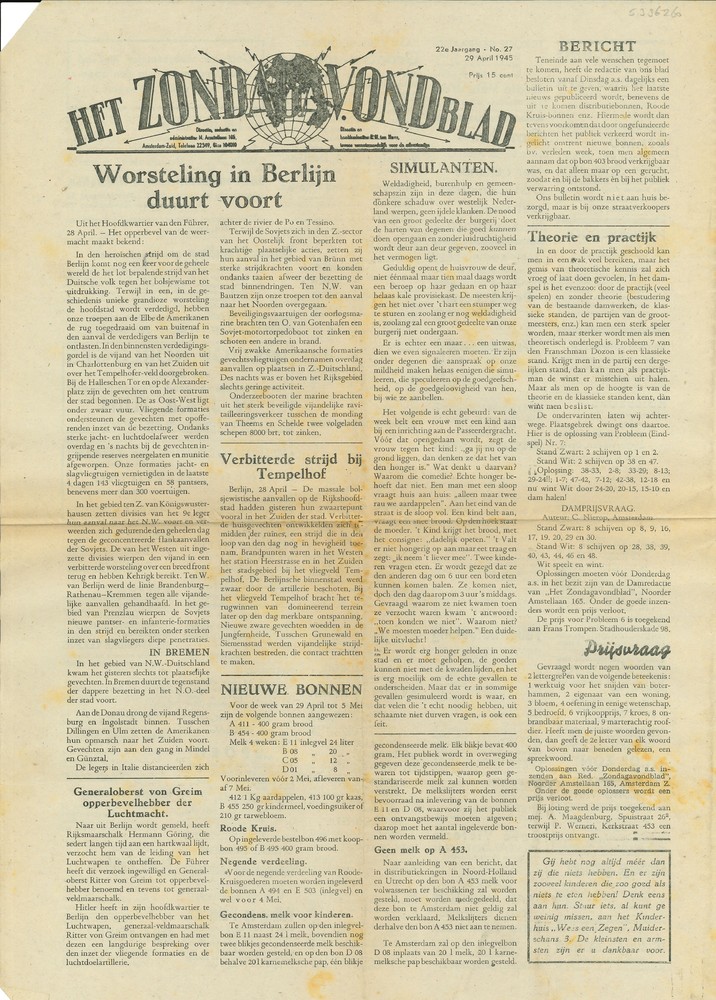 Het Zondagavondblad, 29 april 1945, 22e jaargang no 27