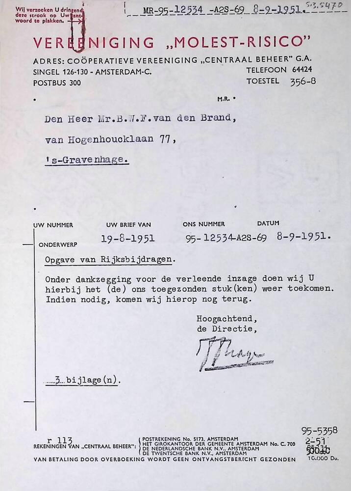 Brief van vereniging "Molest-Risisco" aan B.W.F. v.d...