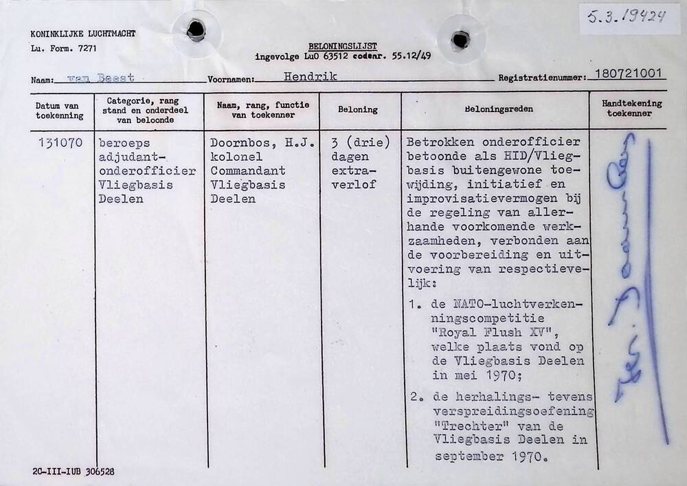 Beloningslijst, Koninklijke Luchtmacht