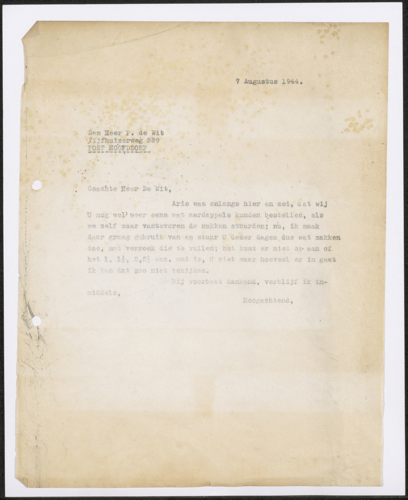 brief gedateerd 30 januari 1944