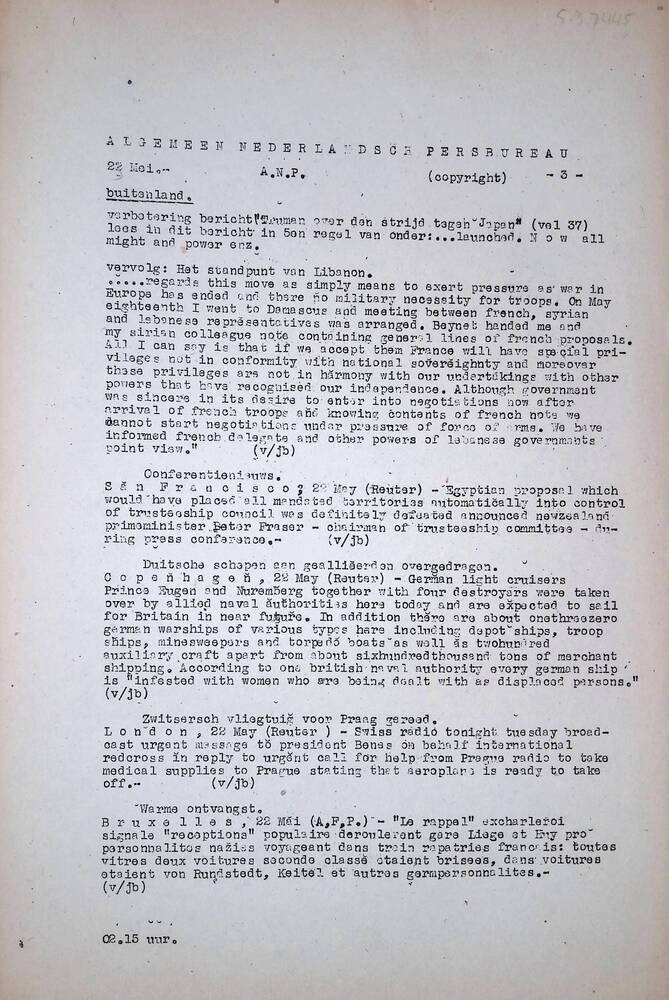 Algemeen Nederlandsch Persbureau, mededelingen, 23 m...