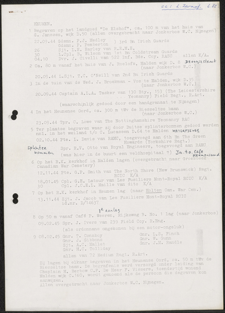 Lijst van gesneuvelde ( begraven) militairen te Heumen.
