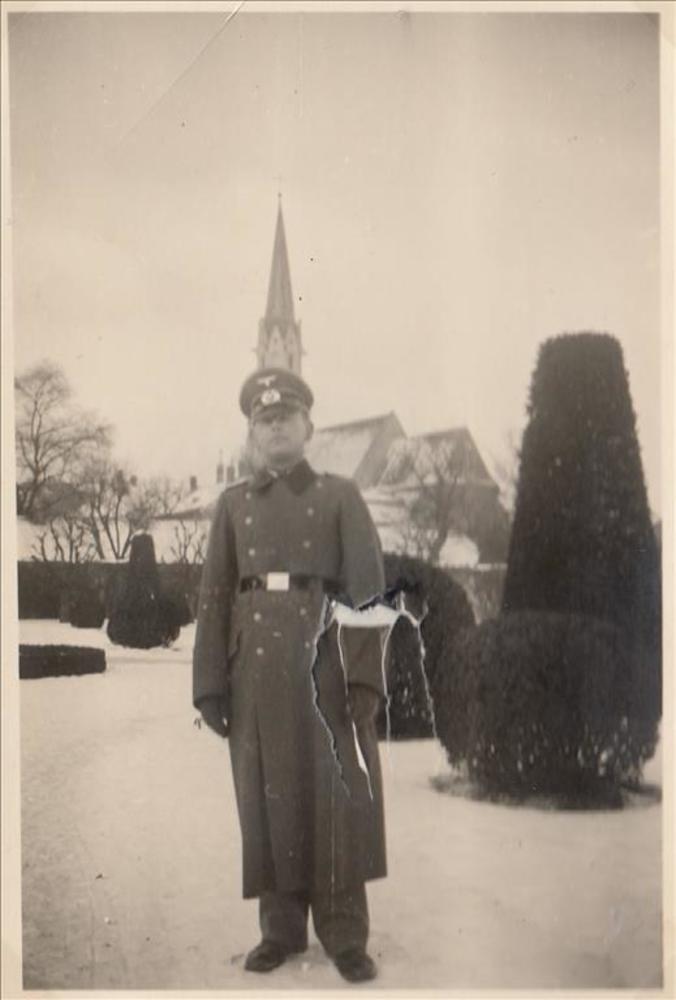 Foto van een duitse officier in een siertuin