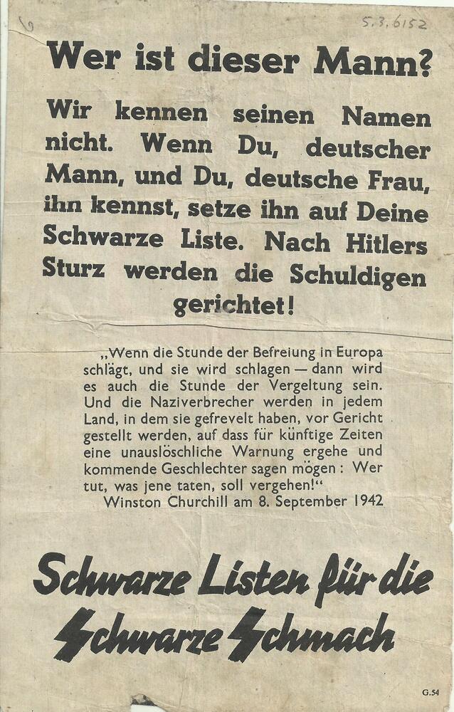 Pamflet: "Wer ist dieser Mann (...) Schwarze Listen ...