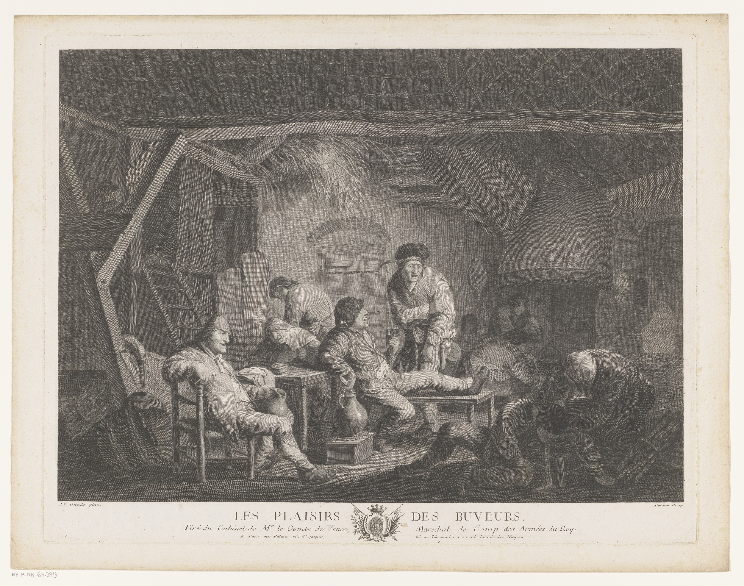 Herberginterieur met drinkende mannen