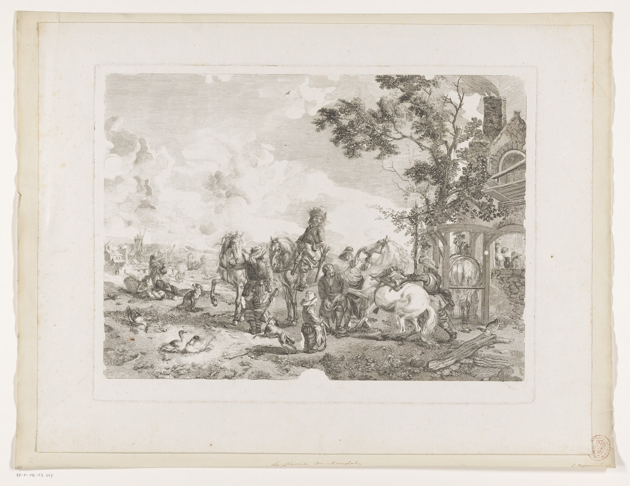 Ruiters bij een hoefsmid