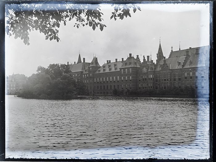 Glasplaatnegatief: de hofvijver bij het Binnenhof, D...