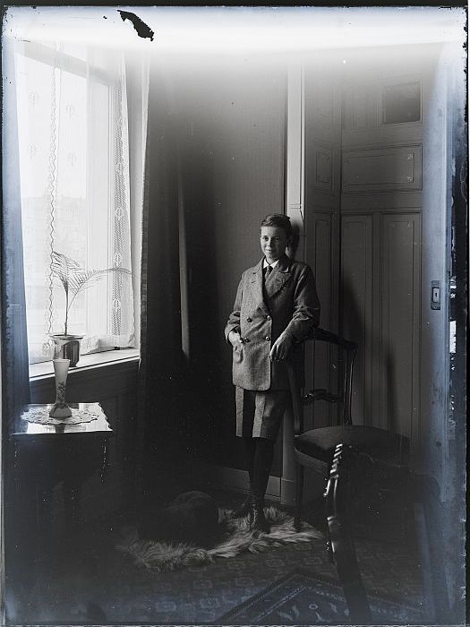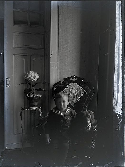 Glasplaatnegatief: jongen met hond