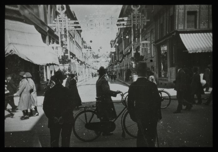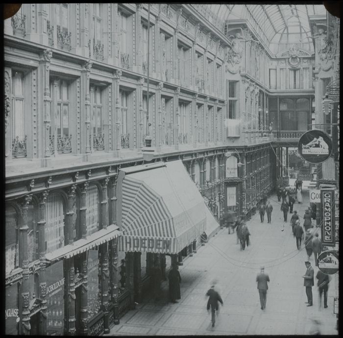 Glasdia van Passage met winkelend publiek