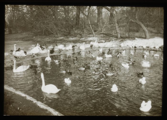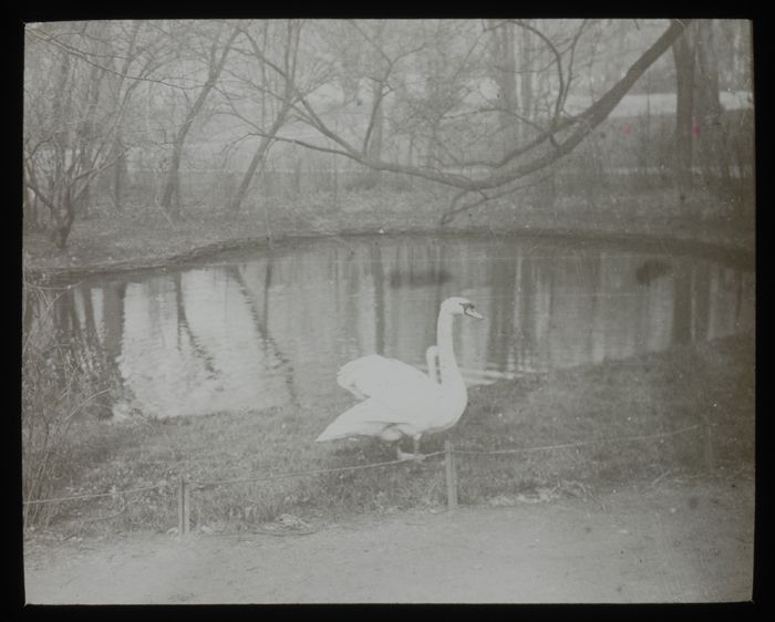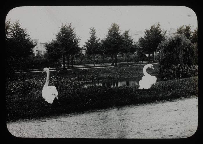 Glasdia van twee knobbelzwanen in de Heemraadssingel