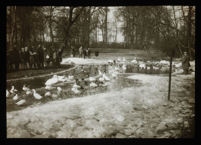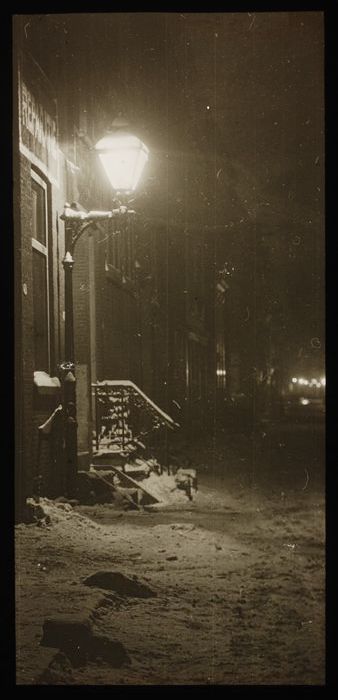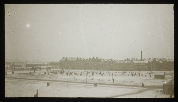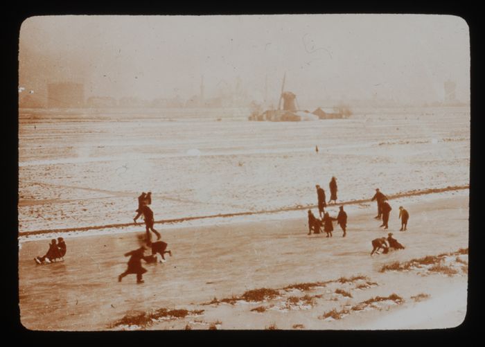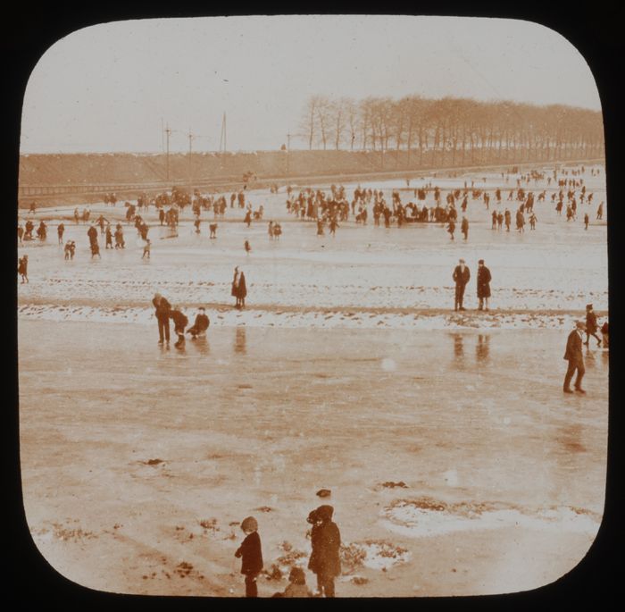 Glasdia van een wintertafereel aan de Voorhaven te D...