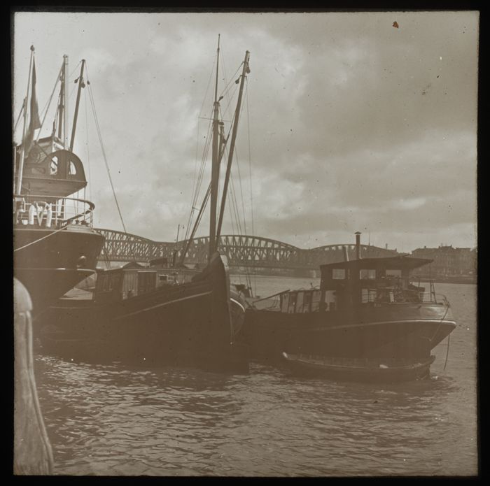 Glasdia van Maas met schepen, Maasbruggen en Noorder...