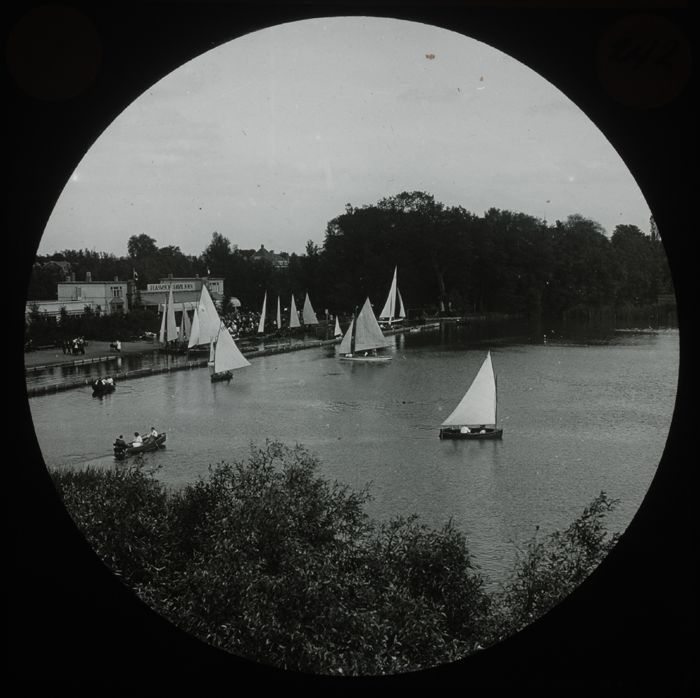 Glasdia van Bergse Plas met Plaswijck Paviljoen en z...