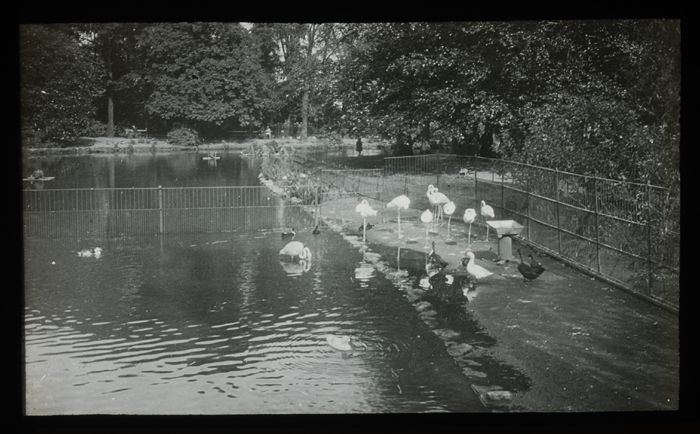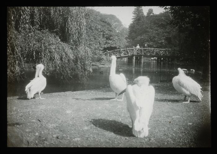 Glasdia van pelikanen in de Diergaarde