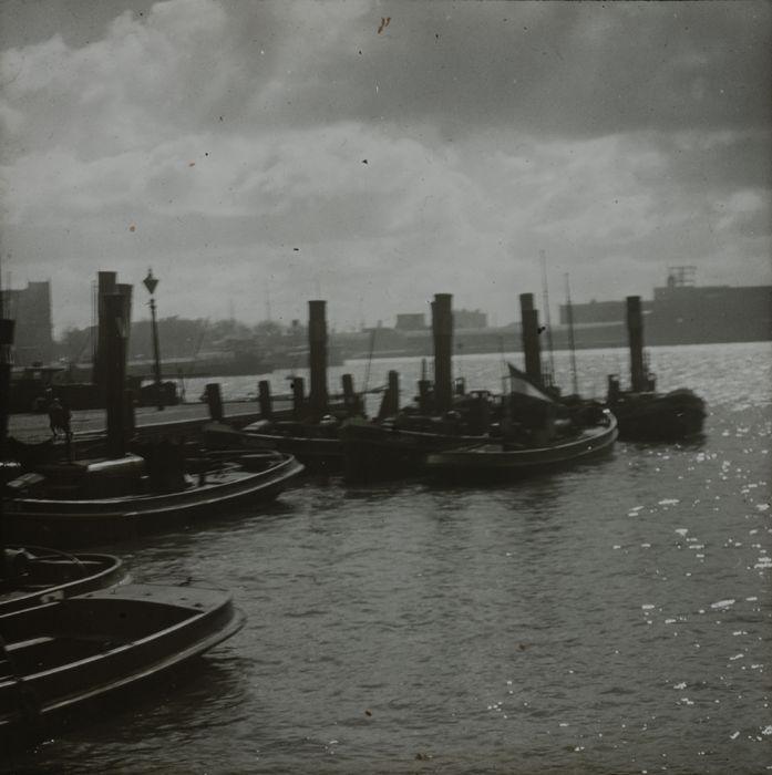 Glasdia van sleepboten op de Nieuwe Maas