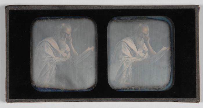 Stereoscoopplaat, daguerreotypie: portret van grijsa...