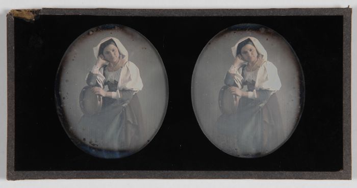 Stereoscoopplaat, daguerreotypie: portret van vrouw ...