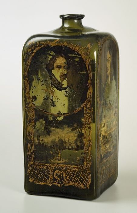 Voorraadfles, sierfles, beschilderd in olieverf en b...