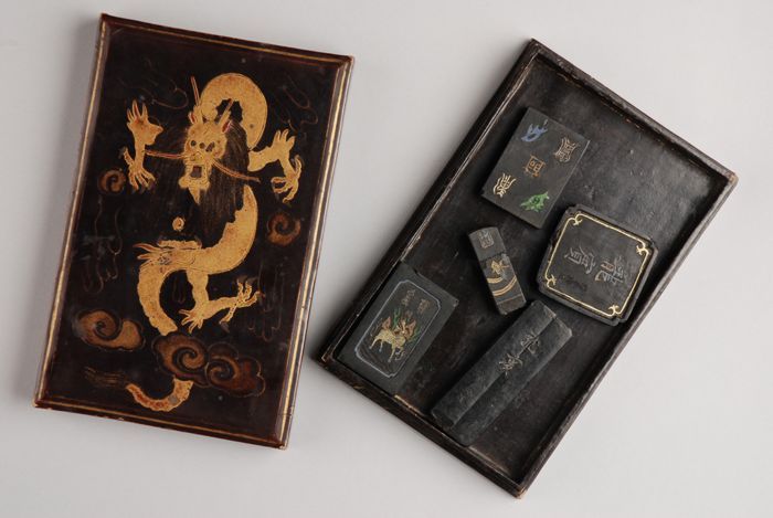 Kalkbak van zwartgelakt hout, gebruikt door Willem I...