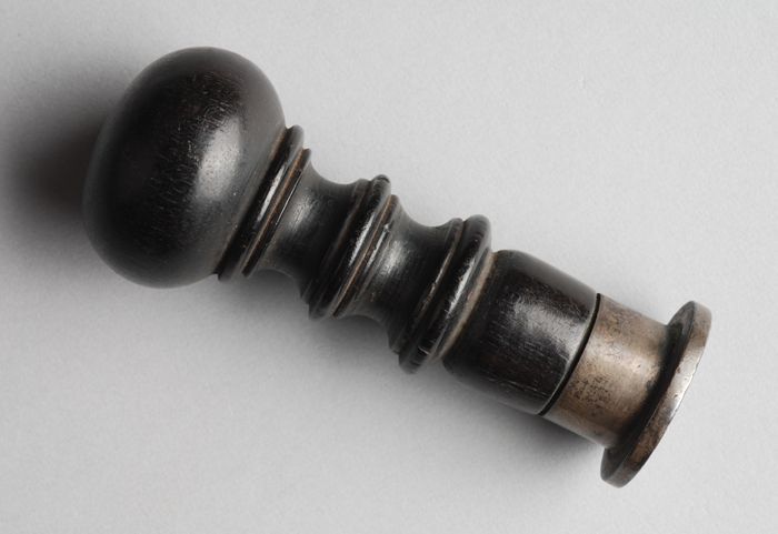 Zwartgelakte houten hamer, gebruikt door koning Will...