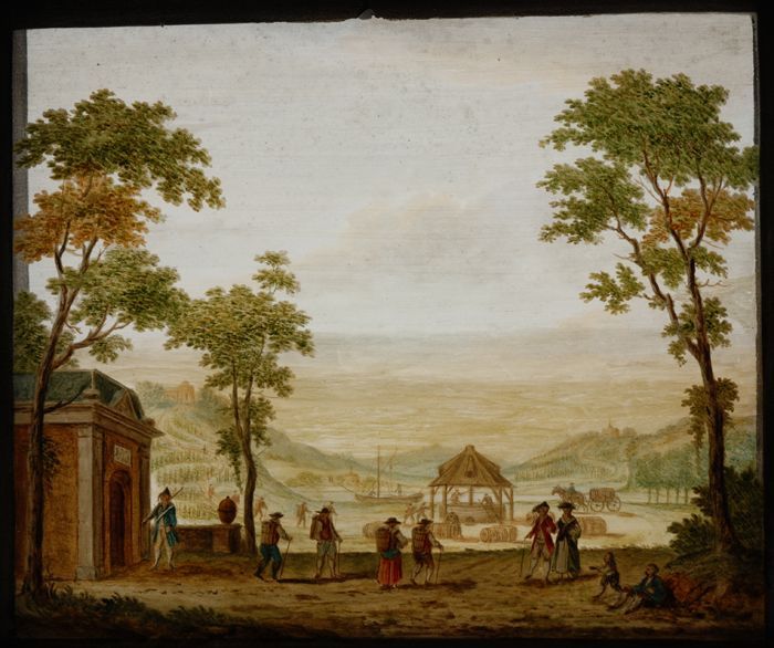 Glasdia van Coolhaven, wandelaars op voorgrond