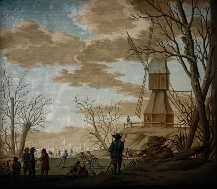 Glasdia winterlandschap met schaatsers en oude Rotte...