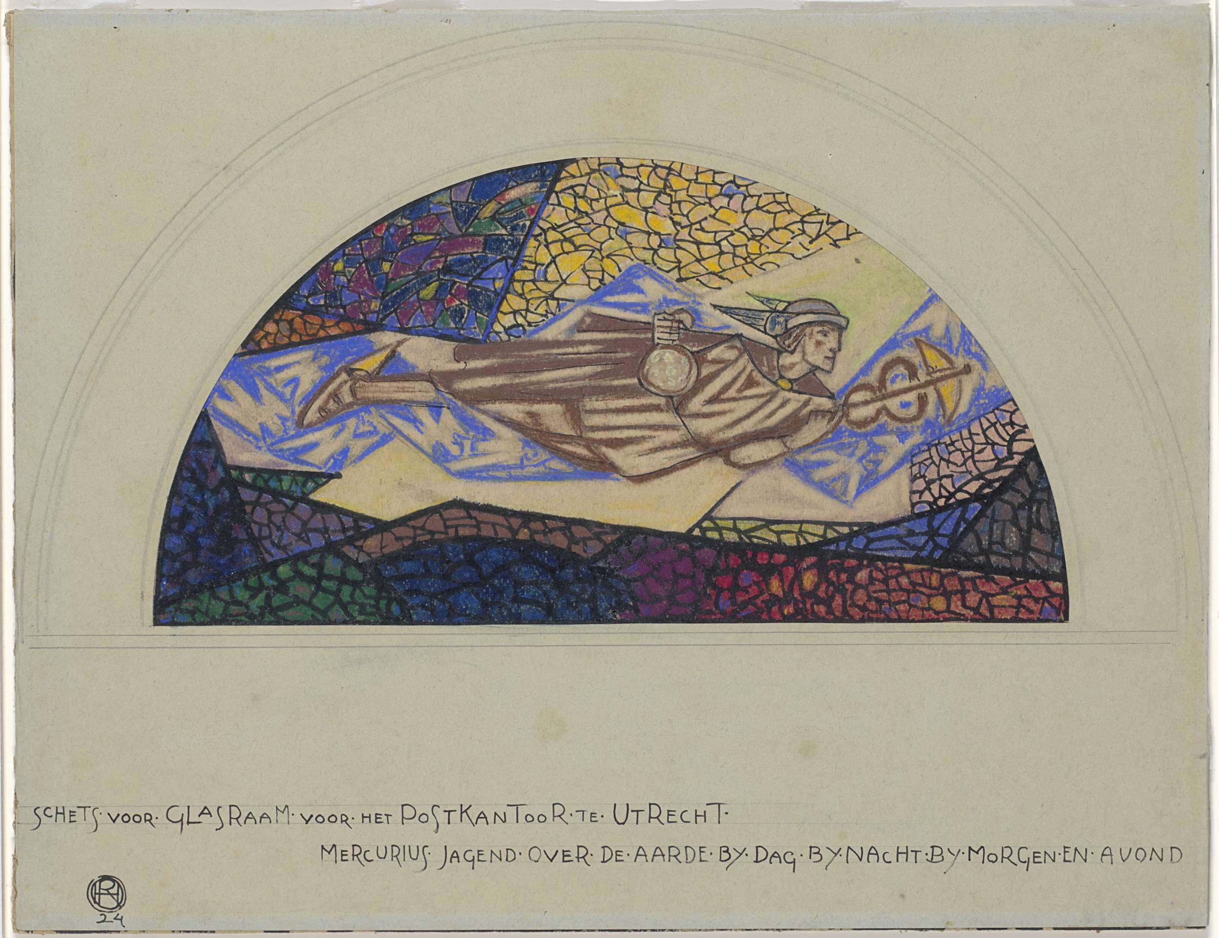 Ontwerp voor raam van het postkantoor te Utrecht: Me...