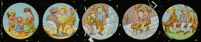 Lantaarnplaatje met vrolijke taferelen met kinderen