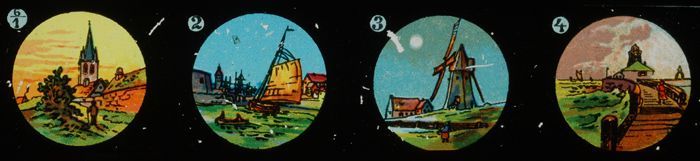 Lantaarnplaatje met Hollandse landschappen