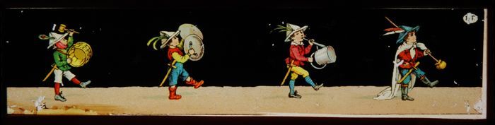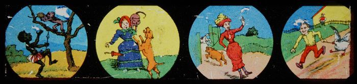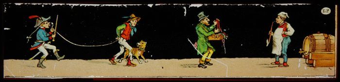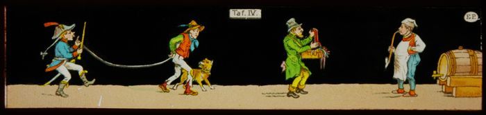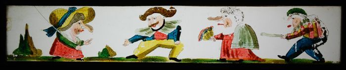 Toverlantaarnplaat met vier komische sketches