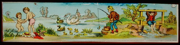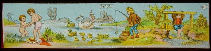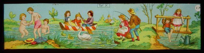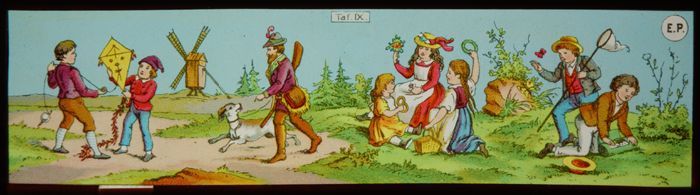 Toverlantaarnplaat "E.P." (Ernst Plank) met kinderen...