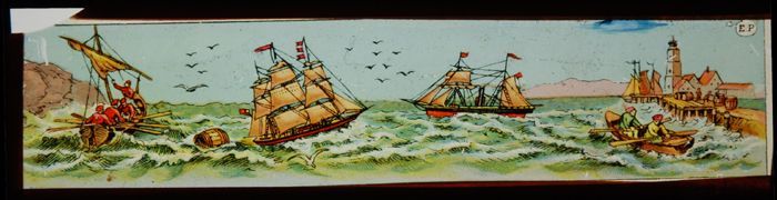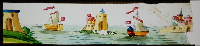 Toverlantaarnplaat "E.P." (Ernst Plank) met havenmon...