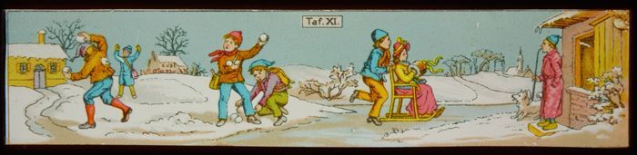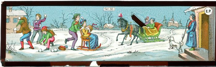 Toverlantaarnplaat "E.P." (Ernst Plank) met winterpret