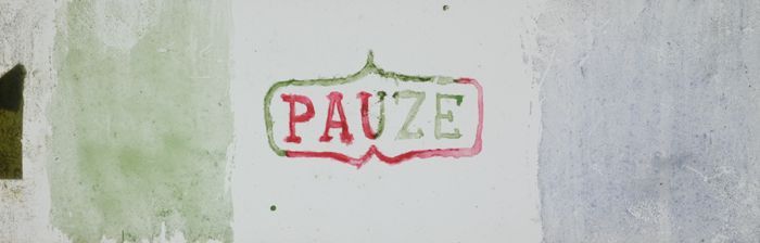 Handgeschilderde toverlantaarnplaat met "Pauze"