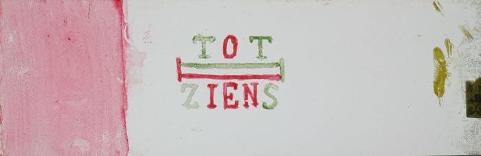 Handgeschilderde toverlantaarnplaat met "Tot ziens"
