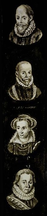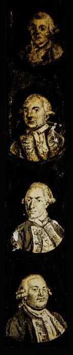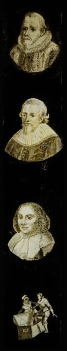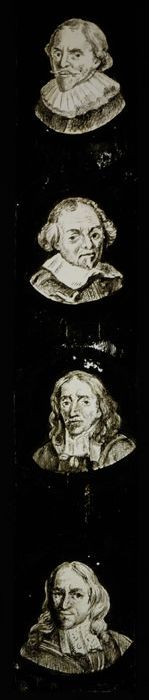 Handgeschilderde lantaarnplaat met vier portretten
