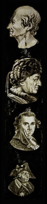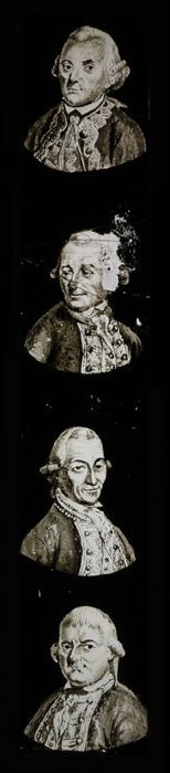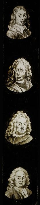 Toverlantaarnplaat "E.P." (Ernst Plank) met vier bustes