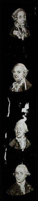 Toverlantaarnplaat met vijf portretten van verre vol...