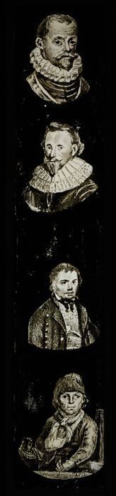 Handgeschilderde lantaarnplaat met vier portretten v...
