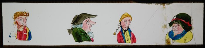 Toverlantaarnplaat met vijf bizarre portretten