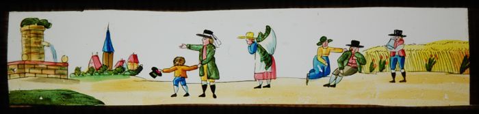 Handgeschilderde lantaarnplaat, afbeelding van mense...