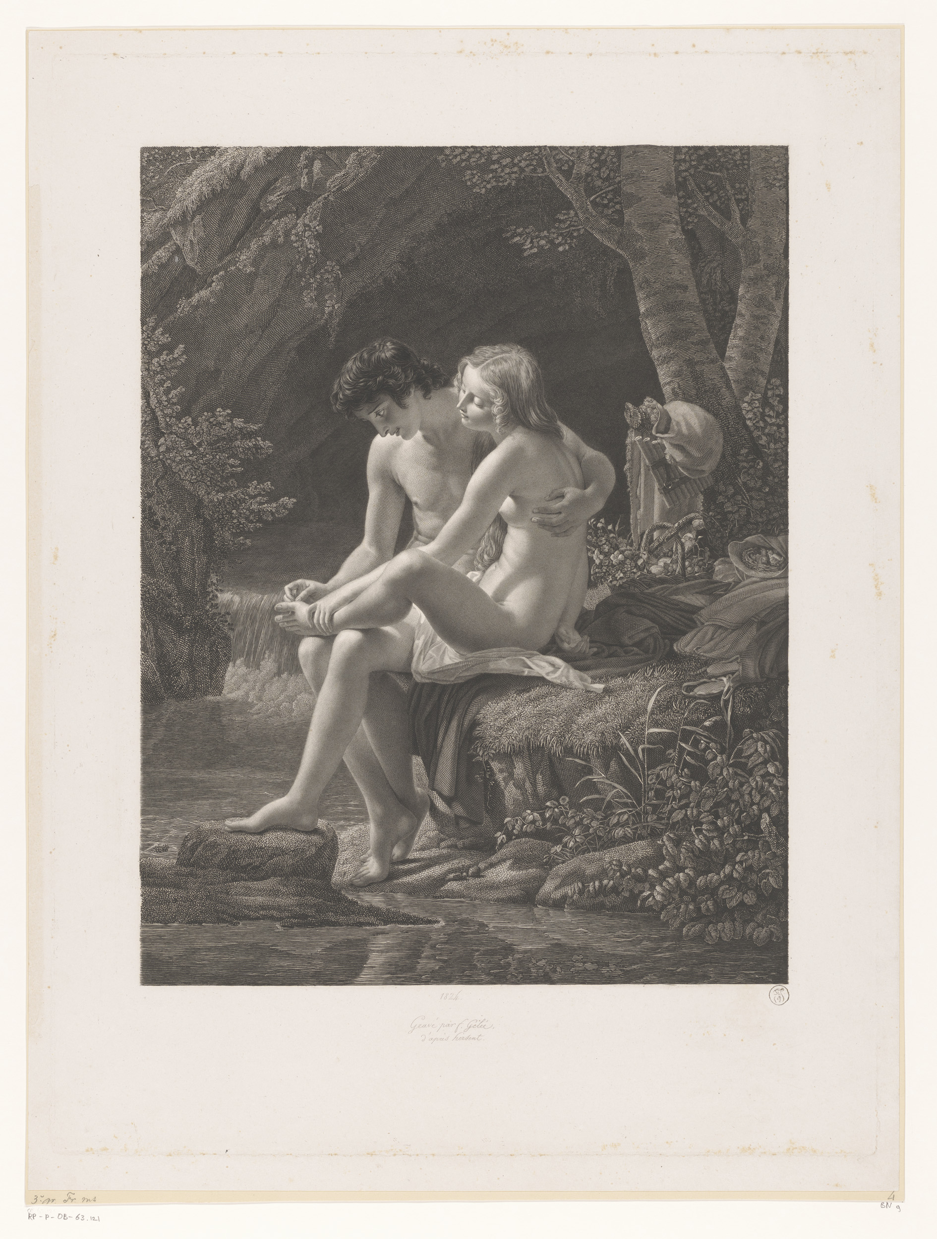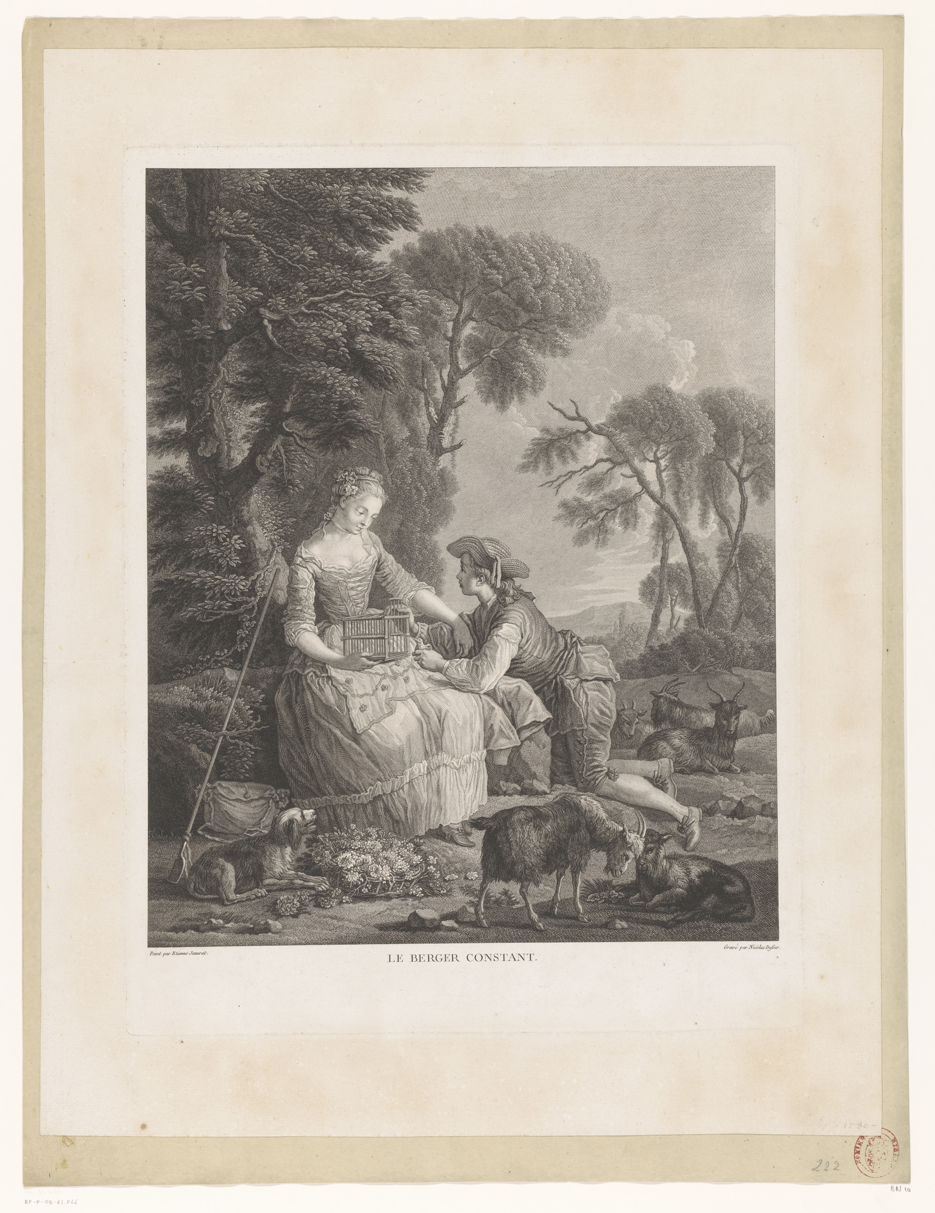 Herder en herderin met vogelkooi
