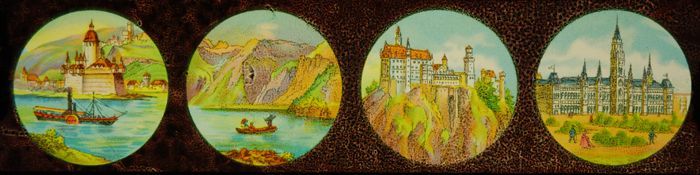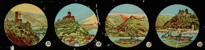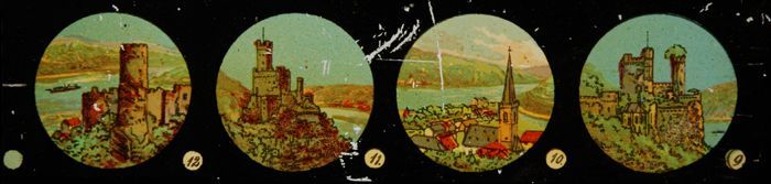 Lantaarnplaat met panorama's van de Rijn