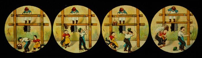 Lantaarnplaat met komische sketch