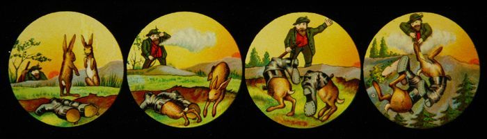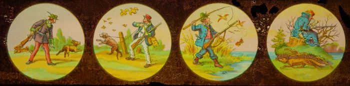 Lantaarnplaat met vier komische jachttaferelen
